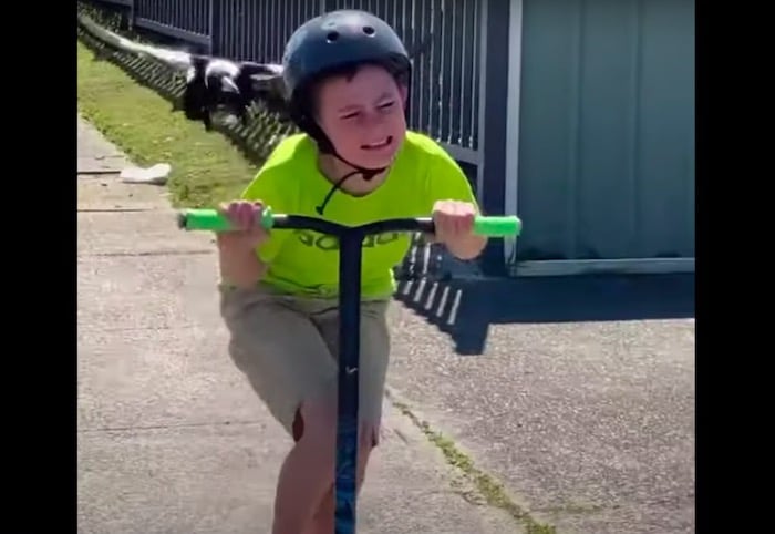 Watch: A magpie chasing a boy on his scooter is like a scene from 'The Birds'