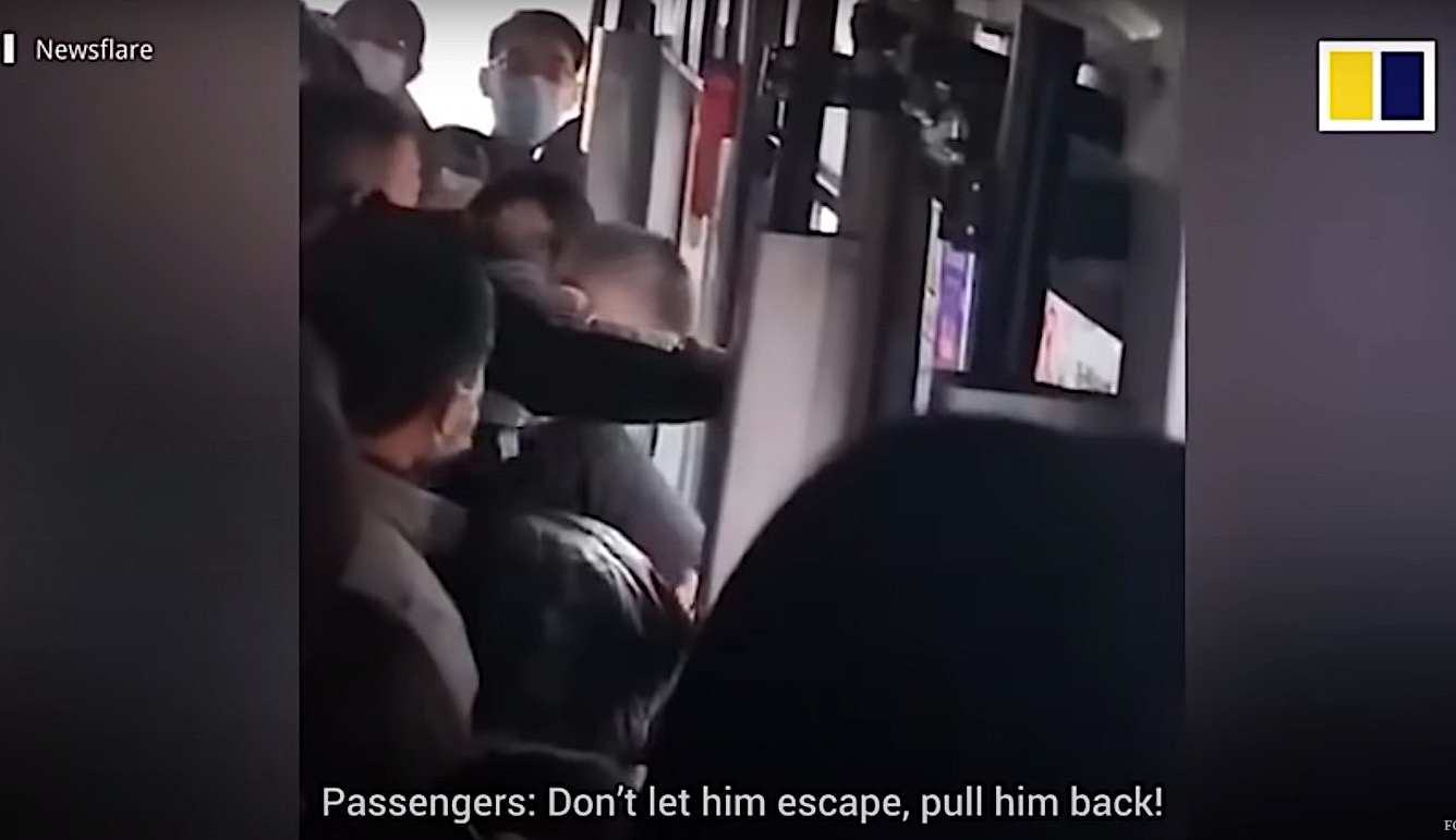 After a gentleman in China allegedly sexually assaulted a university student on a bus, he tried to escape. But the passengers