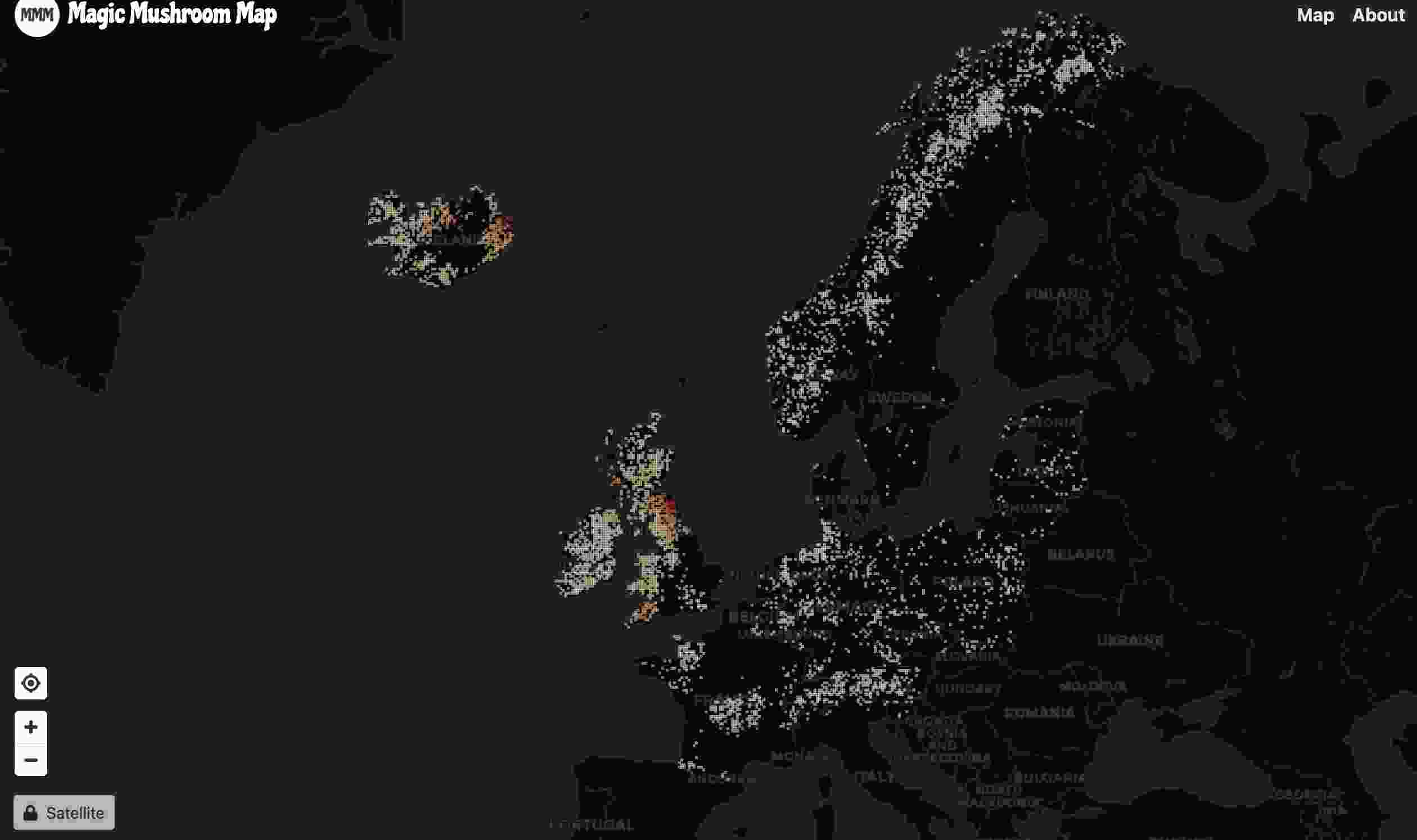 The Magic Mushroom Map shows likely spots for psilocybin-containing mushrooms