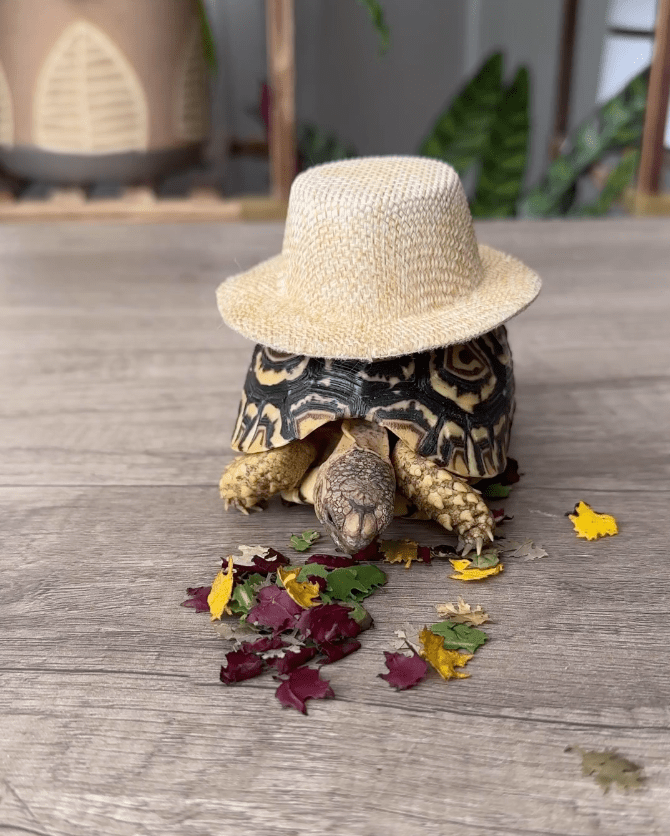 t t t t tThe owner of this adorable tortoise spent 2 hours punching lettuce into tiny leaves. This tortoise is one lucky fellow. He even has a little brimmed hat so that he can eat his...